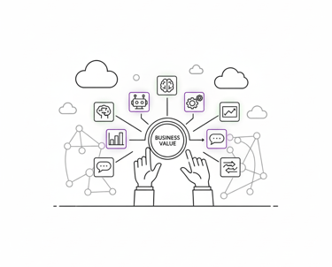 Valor: Orientamos equipes com um modelo prático para gerar ROI e governança em projetos de IA.